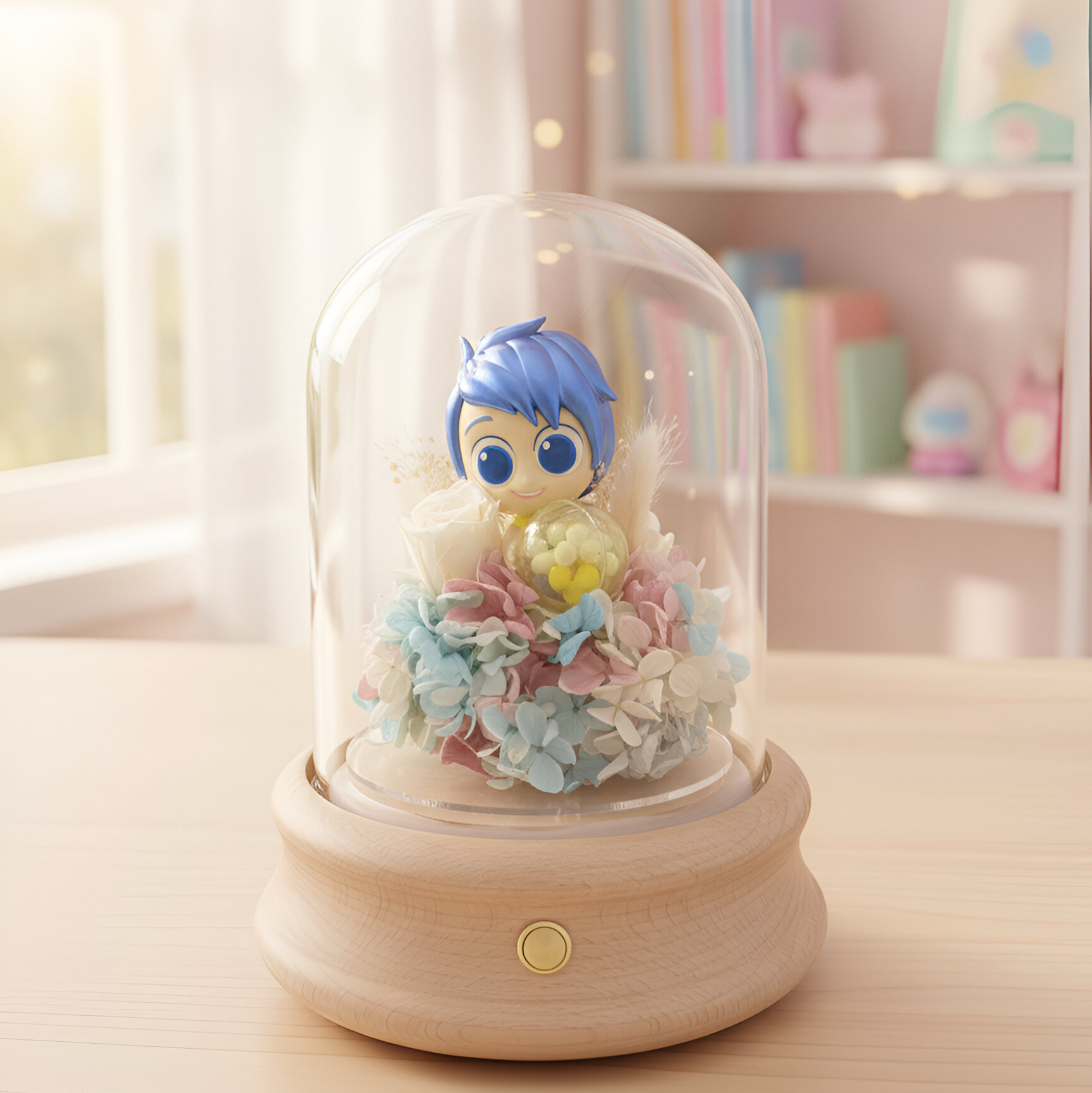 handmade design celebrates the spirit of Joy from the inside out, featuring vibrant Japanese preserved florals. It radiates optimism and pure happiness, complete with a rotary base, bottom light, and Bluetooth speaker.