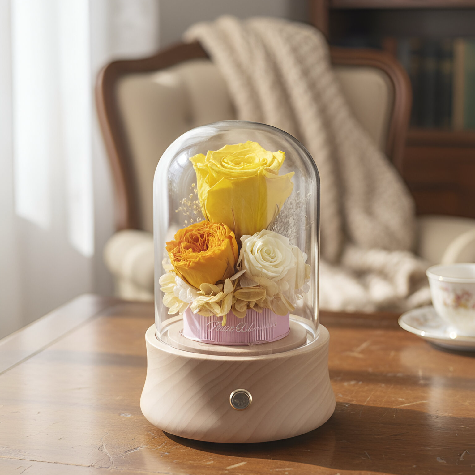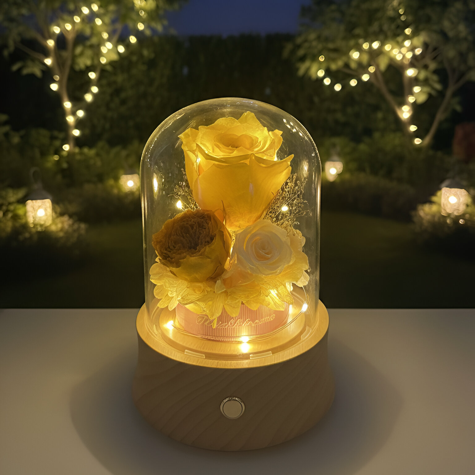 Symbolizing delight and warmth, this gorgeous globe is designed with high-quality Japanese preserved flowers. It functions as a beautiful light source with fairy lights and a powerful Bluetooth speaker.