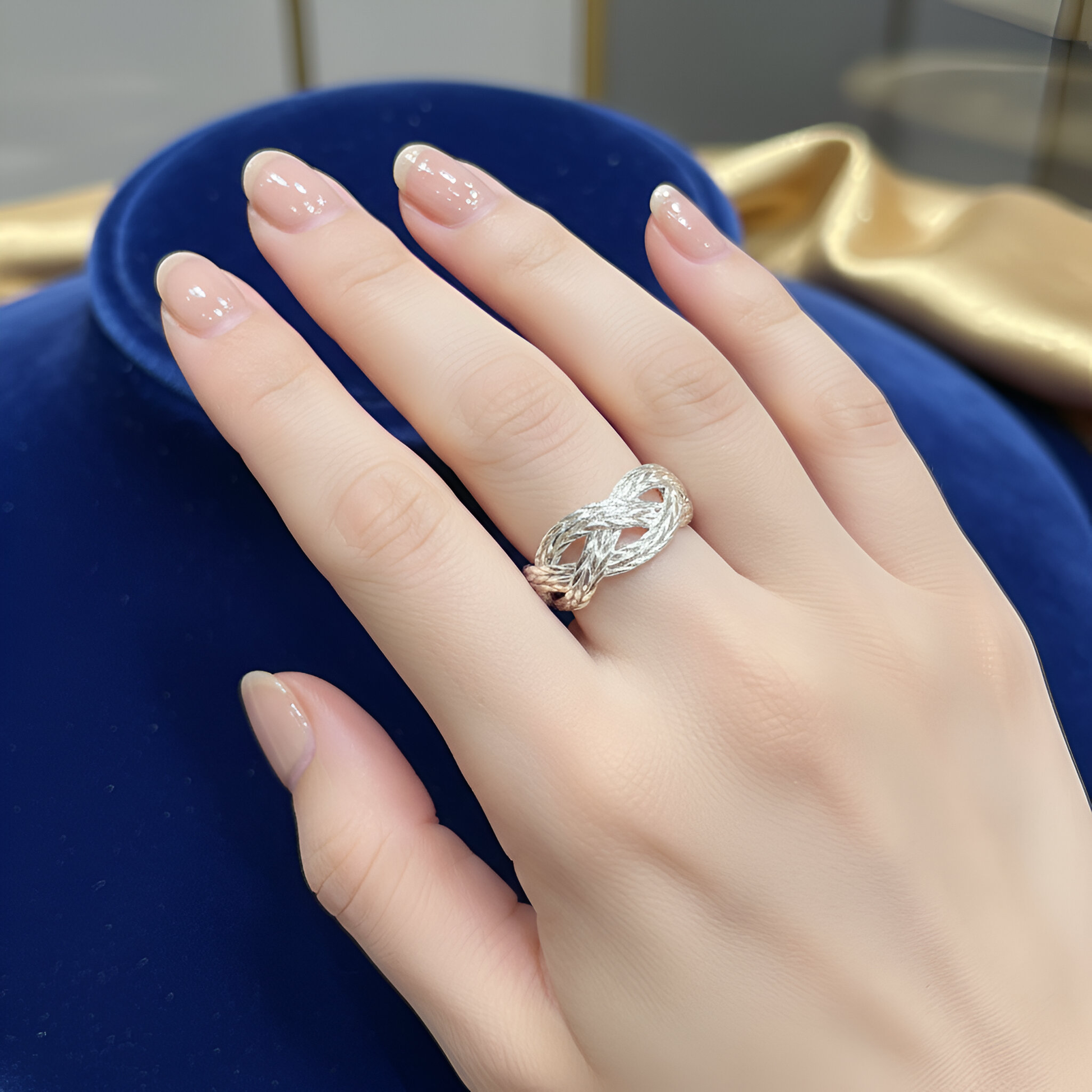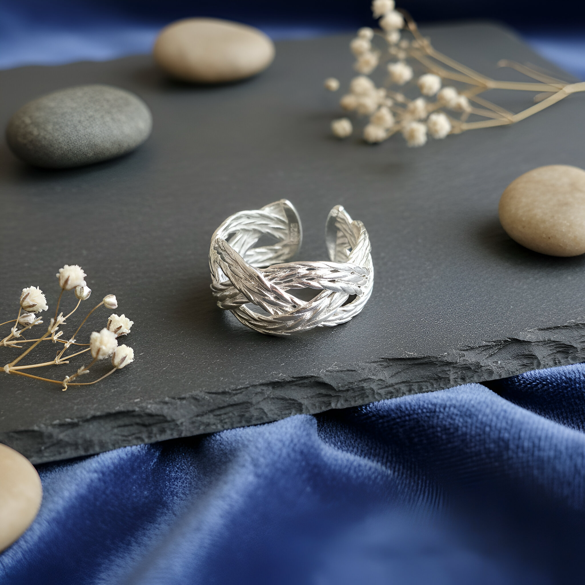 Expertly crafted entirely from durable S925 Sterling Silver, the ring boasts a substantial weight and a bright, lightly oxidized finish that highlights the depth and complexity of the woven texture.